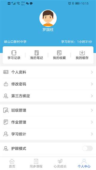 3、展示自己的学习总时长数据,个人中心展示了自己总学习市时长与有效期数据;