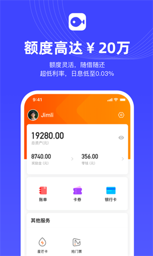 2、息费透明,随借随还:额度高达20万 日息低至0.02%。