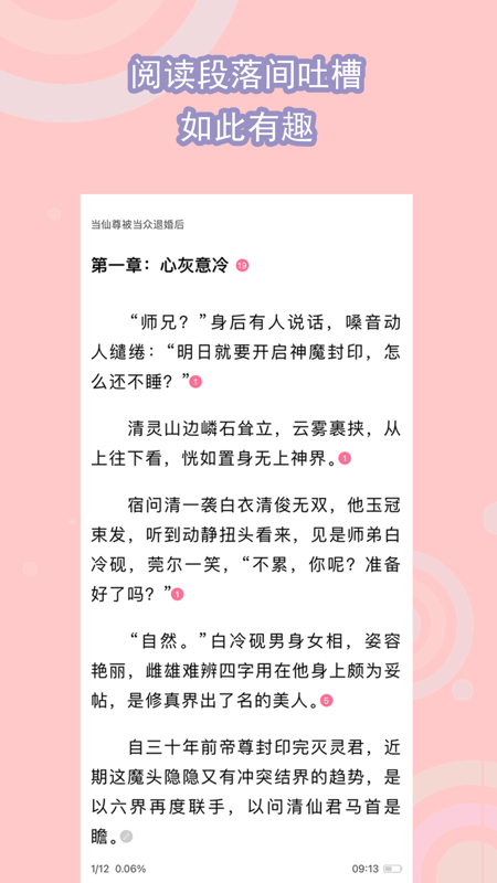这里还有社交吐槽,评论,社交聊天功能,阅读更贴心,和作者更贴近。
