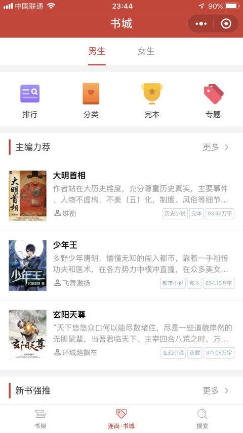 千万小说云集,书写全新的阅读世界。海量图书,快速更新,连尚读书打造你的私人书籍典藏室。