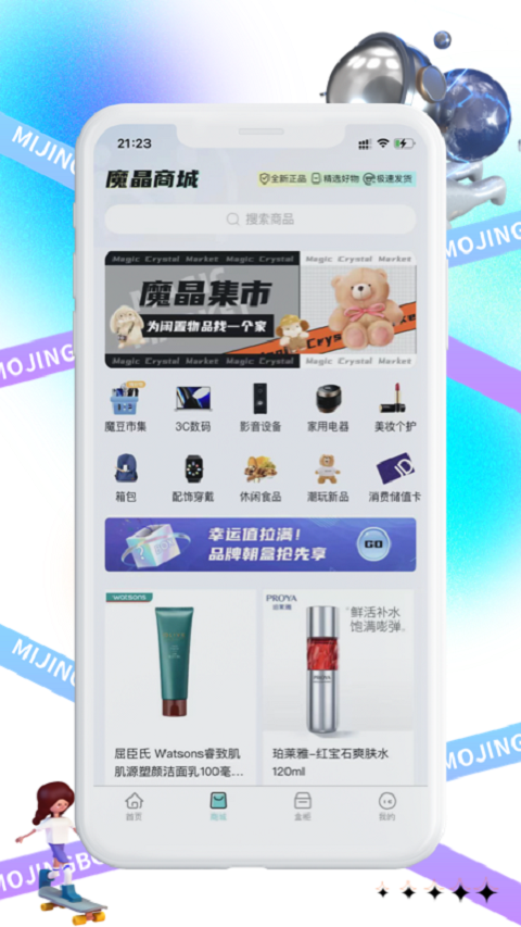 魔晶商城--是一家集创意IP、数码、美妆、工艺品、文具、食品、服饰及虚拟兑换产品等为一体的综合性高科技创意新零售平台运营商。 魔晶商城秉承着为广大消费者“花少钱得惊喜好物,赚收益享品质生活”这一品牌理念,致力于整合开发生活领域品牌价值,以文化、产品、运营、体验、社交五个领域为核心,完成文化层塑造内容、产品层创新整合、运营层渠道协同、体验层贴近用户、社交层平台互联,围绕用户生活圈做整合,提升用户综合体验,促进生活领域消费升级,形成全新的生活产业生态圈。
