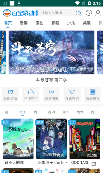 百宝袋动漫是款追番神器,你想看的,这里都有哦!最新更新的国产动漫、日漫,你都能直接免费看到,没有广告,而且是高清画质哦,app里面还收录了很多美漫,只要是网上有的,这里都有,有兴趣的小伙伴欢迎来下载!