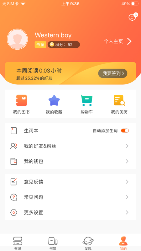 外研阅读使用与外研阅读通用的账号,下载、同步与分享功能需要账号登录。