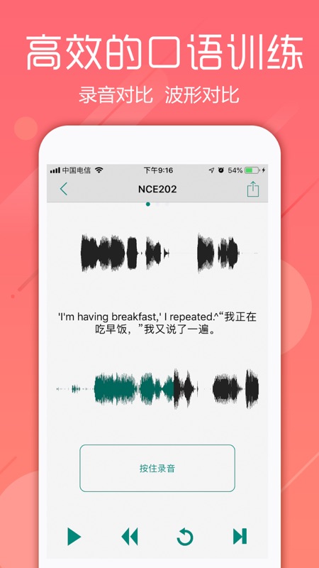 复读时实时显示音频波形图,可视化地纠正查看发音;