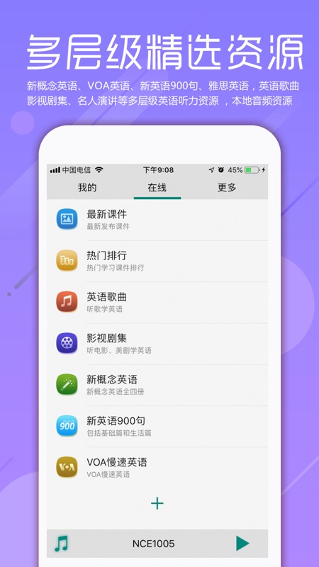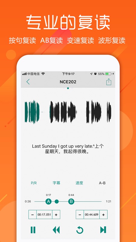 实现以句子为单位练习英语听力,可以重复地听一句话,专治您的听不懂;