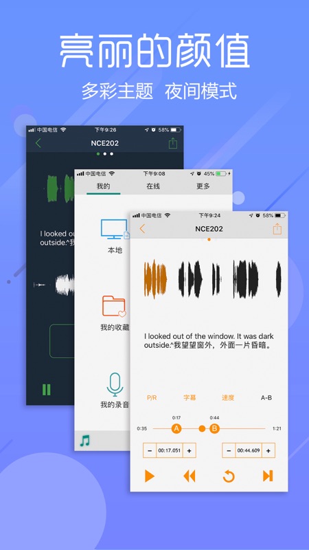 3:点滴复读机是精心设计的产品,没有广告或其它花样功能,给您一个清静、简单而高效的学习环境;