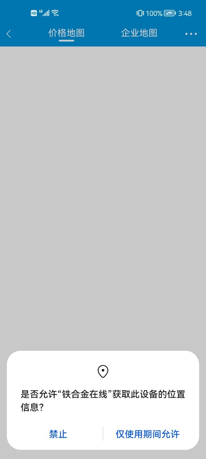 定位权限弹窗(进入“电子地图”会弹出该弹窗,若未给出相关权限,则会有相关提示)