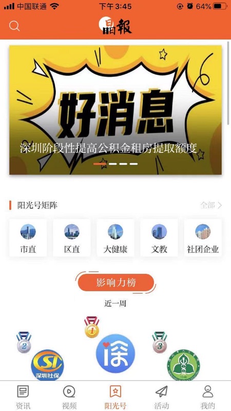 阳光号:i深圳、深圳公安、深圳交警、深圳社保、深圳智慧党建、深圳市场监管、深圳市人民医院、深圳博物馆等超百家政务公号内容发布实时同步,最全、最新、最快的民生资讯服务第一时间触达。