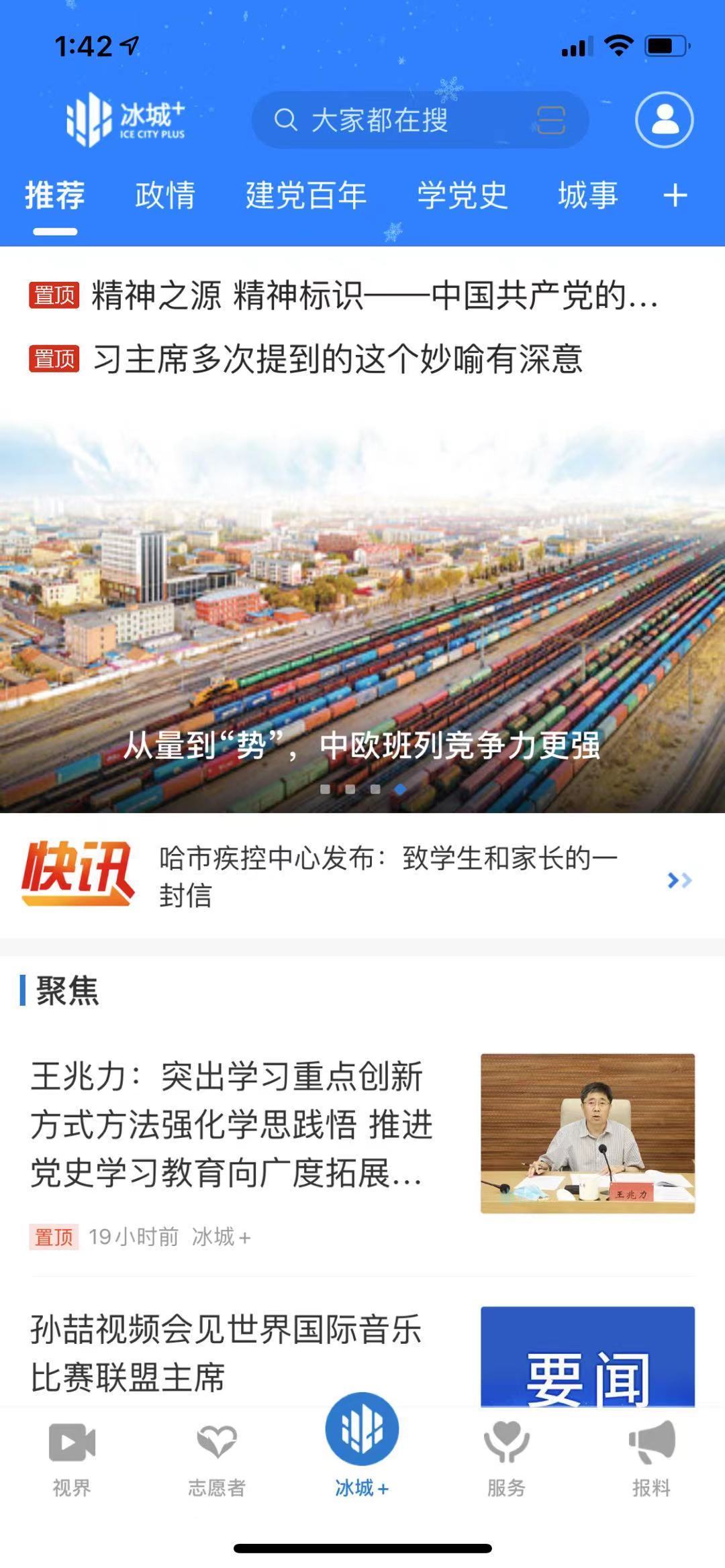 “冰城+”客户端是哈尔滨市新型传播平台、互联网传播和意识形态主阵地。“冰城+”以打造高水平的“舆论主阵地+城市推广商”为目标,集“新闻+政务+服务”于一体,发挥哈尔滨的权威统一“出口”功能,24小时为用户派送最全的新闻资讯、最权威的政务动态、最贴心的生活服务。