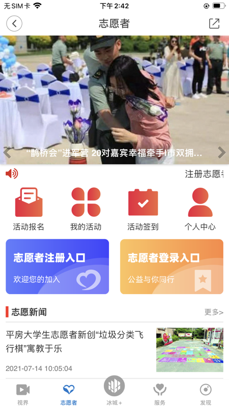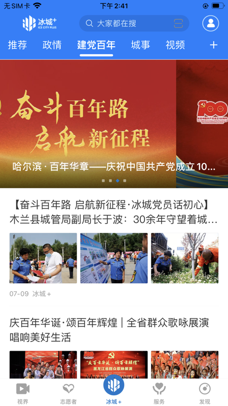 “冰城+”客户端现设新闻、视界、志愿者、服务、发现等特色专区,开通推荐、政情、城事、冰城号、直播、视频、天下、旅游、康养等频道,全力打造区域性生态级移动全媒平台,深耕冰城,影响龙江,辐射全国。