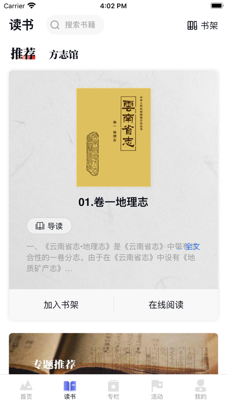 -阅读服务:可以方便地使用查找、书架和阅读等服务