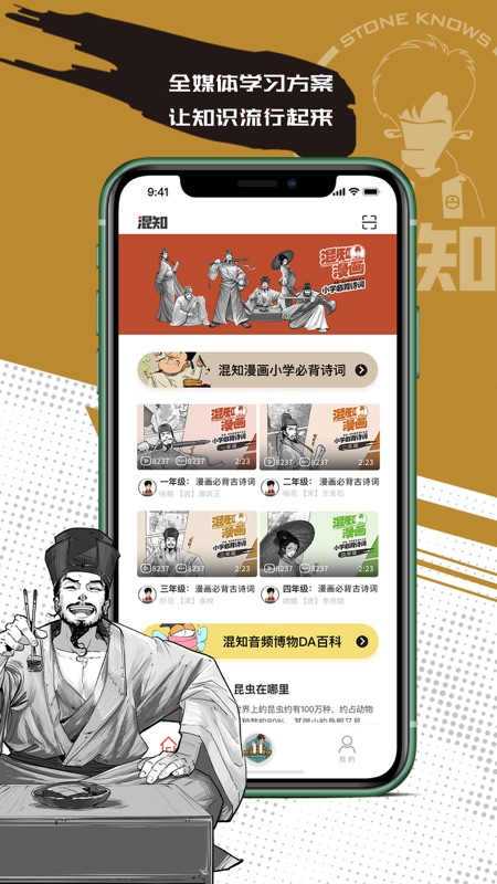 1. 混知APP是漫画式科普大V“混知”团队打造的全媒体通识教育软件,致力于用擅长的漫画语言,把一本正经的各学科知识变成有趣有料的内容。