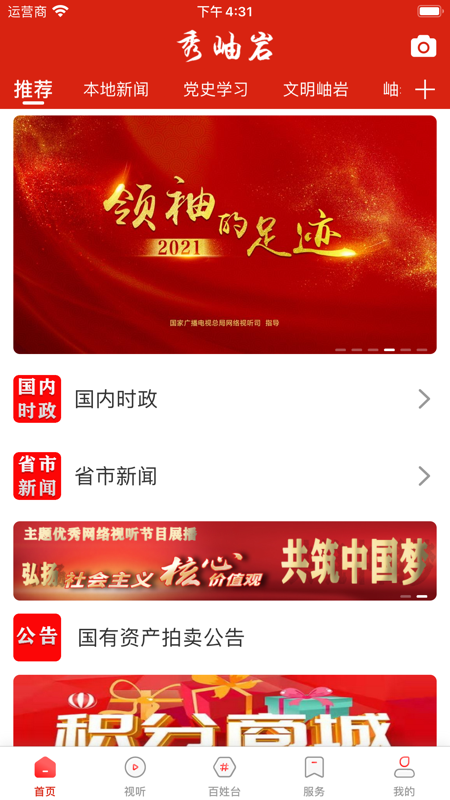 秀岫岩,一般又称秀岫岩融媒app。岫岩融媒APP是由岫岩满族自治县融媒体中心管理运营的新闻客户端,其功能除了进行广播电视的实时播放和直播外,还包括“互联网+新闻”、“互联网+政务”“互联网+服务”“互联网+民生”“互联网+商业”等内容。其中新闻频道整合中央、省市、本地以及网络媒体资源,推出文、图、影、音融合的资讯内容;政务频道设置“掌上政务”模块,打造政务矩阵,实现网上办公;服务频道通过“智慧社区”“监督平台”“行风热线”“不吐不快”等模块为群众提供便民服务和诉求平台,同时,叠加“出行助手”和“生活百科”等内容,实现查询、购物多项功能;此外还开设了“智慧党建”“文明实践”等特色版块,打造全民参与、全面分享、全民受益”的区域第一移动门户。
