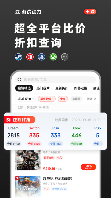 一款为玩家省钱的App!专为Steam、Switch、PS4、Xbox和Epic玩家设计,提供全平台游戏促销资讯,更有强大的游戏历史价格查询功能,让你玩得轻松又带劲。