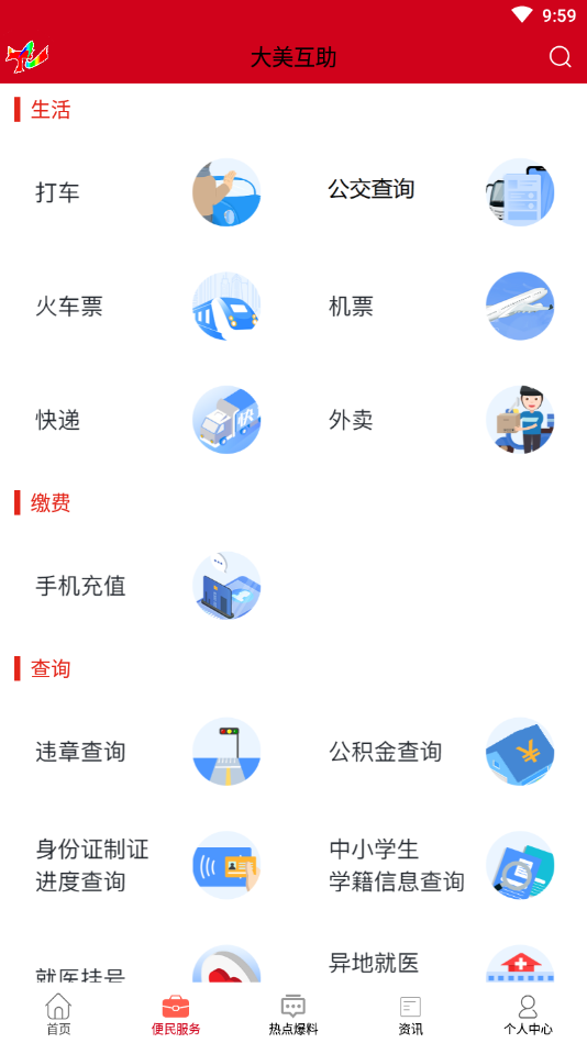 打车、公交查询、出行服务、快递、违章查询、手机充值、公积金查询...