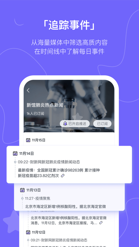 不知道网上热议什么?快来kik一下吧~从海量媒体中筛选出高质量的内容,让你在时间线中完整了解每天发生大事的前因后果!