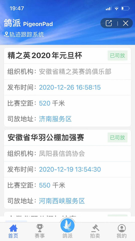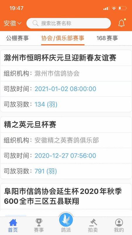 168信鸽比赛报道系统,以及多款赛鸽在线直播平台,拥有信鸽鸽王赛、赛鸽团体赛、赛鸽指定鸽赛。