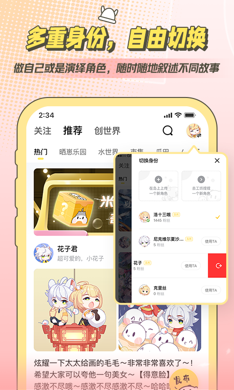 制作简单,可以一键导出高清原质图片,一键创建为角色参与到米仓社区讨论。