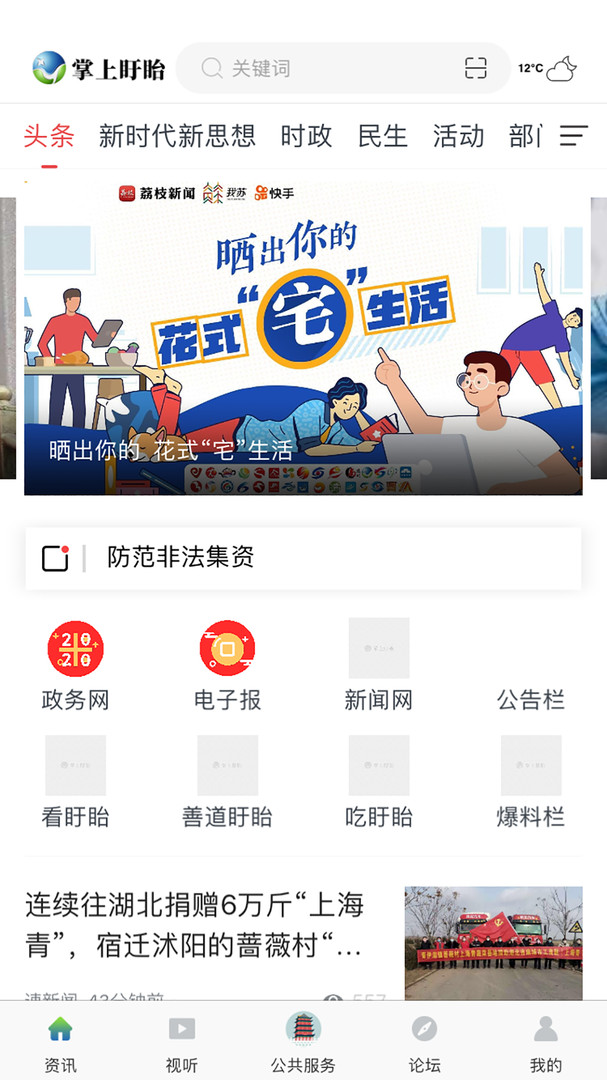 “掌上盱眙”是盱眙融媒体中心主打新媒体客户端产品,主要提供本地资讯发布、盱眙电视频道及广播频率内容的在线直播和点播观看,立足本地政务和民生服务,为本地群众提供问政服务和公共服务渠道,打造集资讯和服务为一体的本地门户产品。